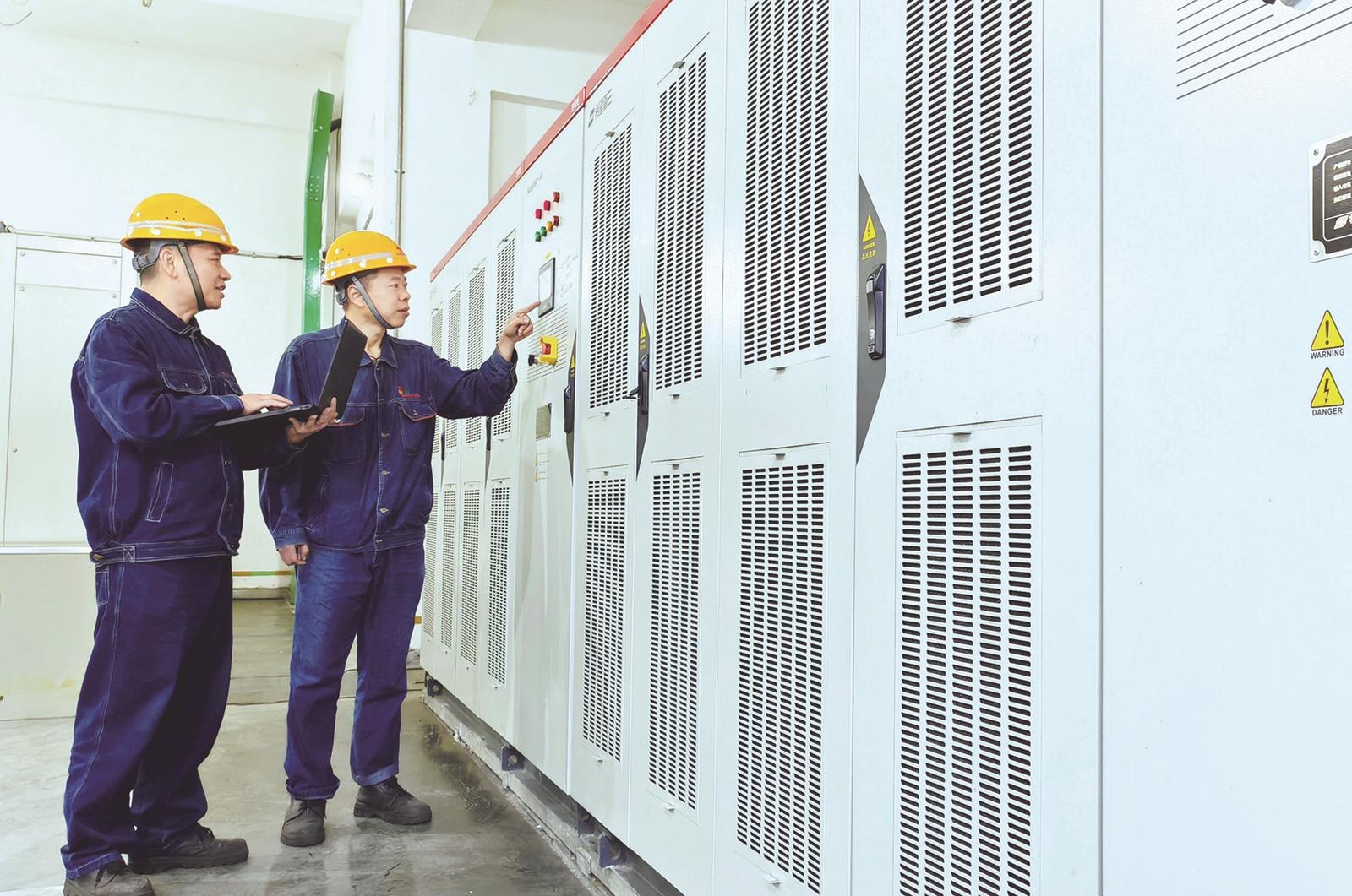 图为该产线点检作业区职工点检钛渣破磨生产工序的变频器。