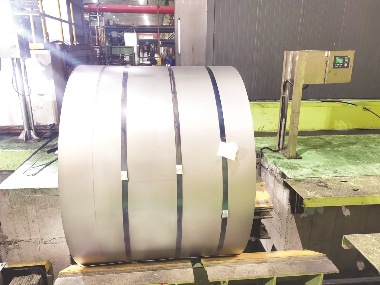 ④本钢“高强度高淬透性热轧抗氧化免涂层热成形钢”技术获评“全球新能源汽车前沿技术”,这是应用该技术生产的钢卷产品。