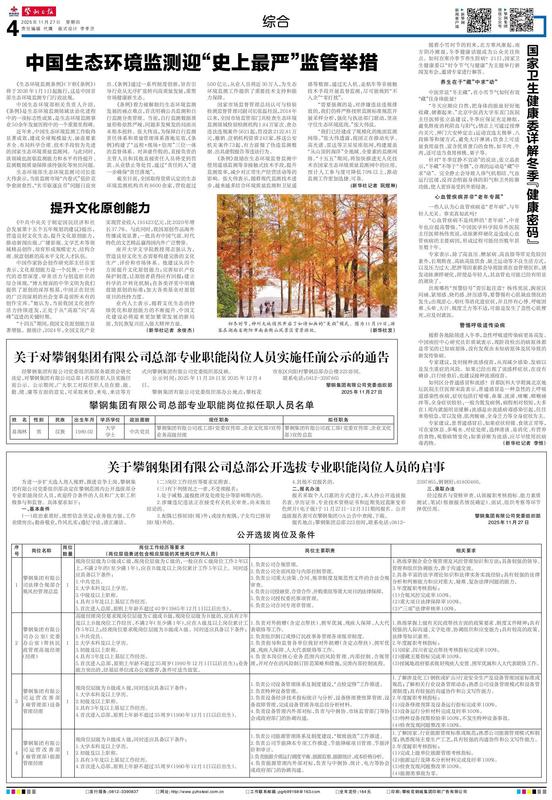 关于攀钢集团有限公司总部公开选拔专业职能岗位人员的启事