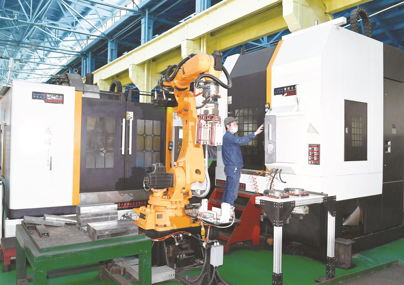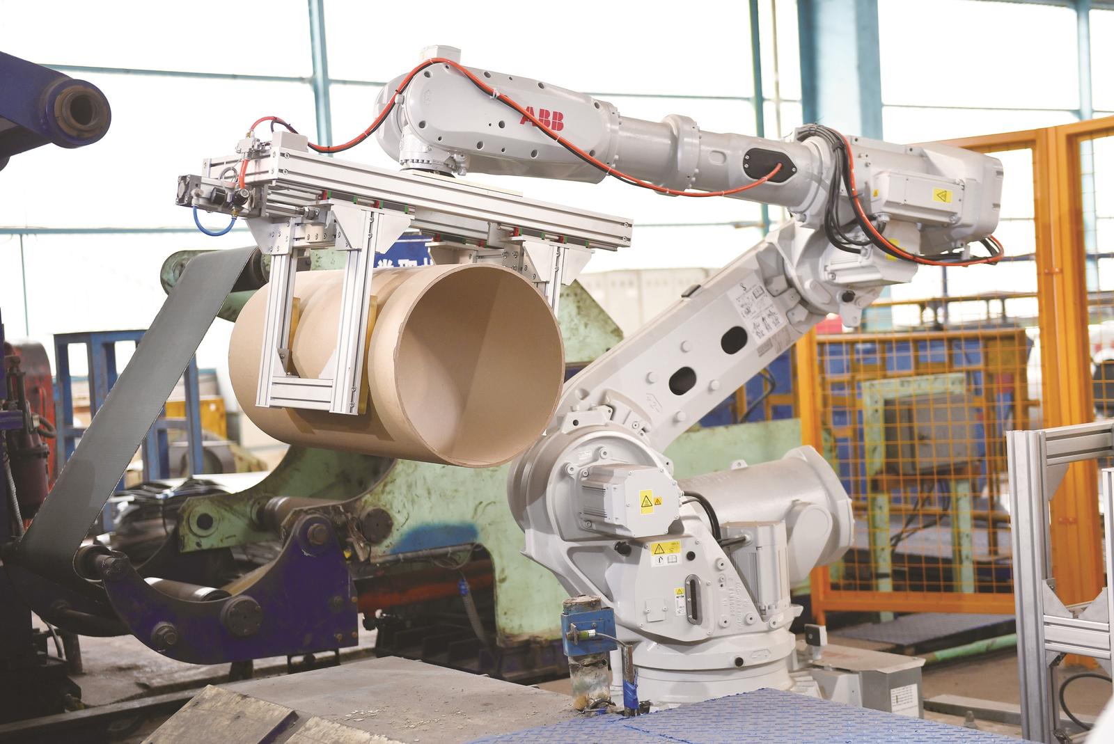 攀钢积极推进智能制造,为企业高质量发展注入科技动能。图为攀钢钒板材厂彩涂产线纸套筒机器人正在作业。