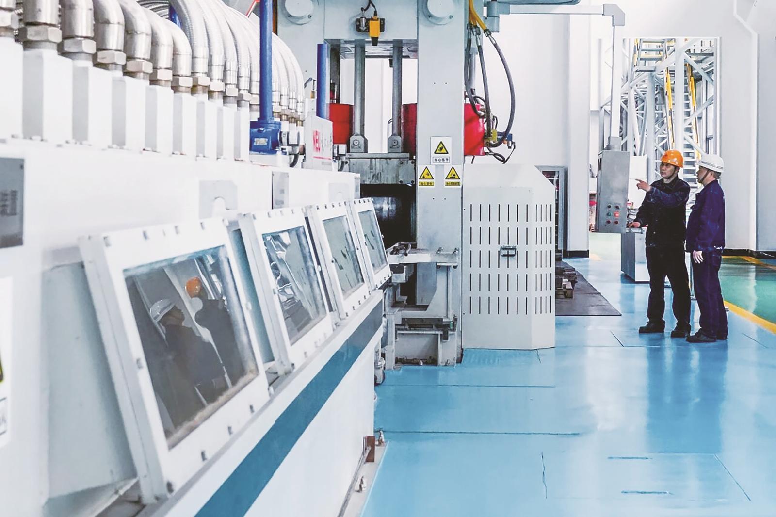 攀钢建成投用钒钛新材料、钛钢联合制造两大省级中试研发平台,以一流科研平台支撑关键技术工程化验证与成果产业化转化。图为研究院科研人员正在钛钢联合制造中试研发平台开展钛合金板材热轧实验。
