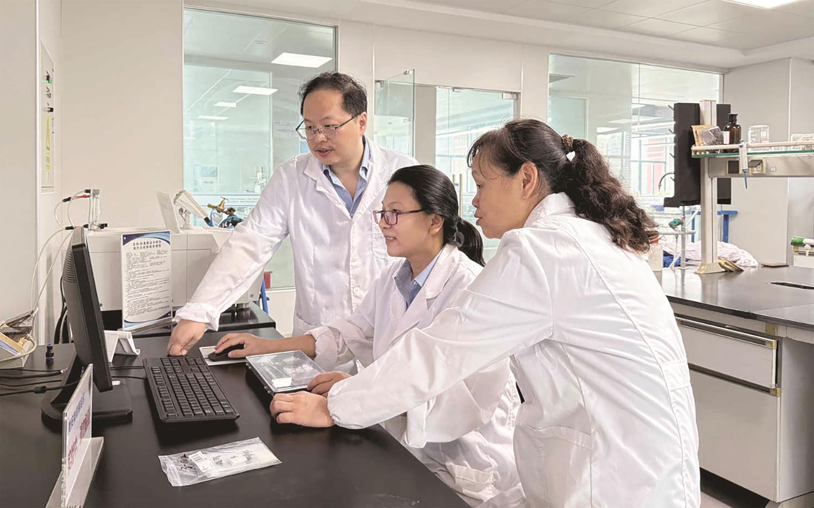 攀钢高度重视科技创新人才队伍建设,大批青年科技骨干在关键核心技术攻关中挑大梁、当主角。图为研究院钒钛化工技术研究所科研人员正在讨论产品质量提升实验方案。