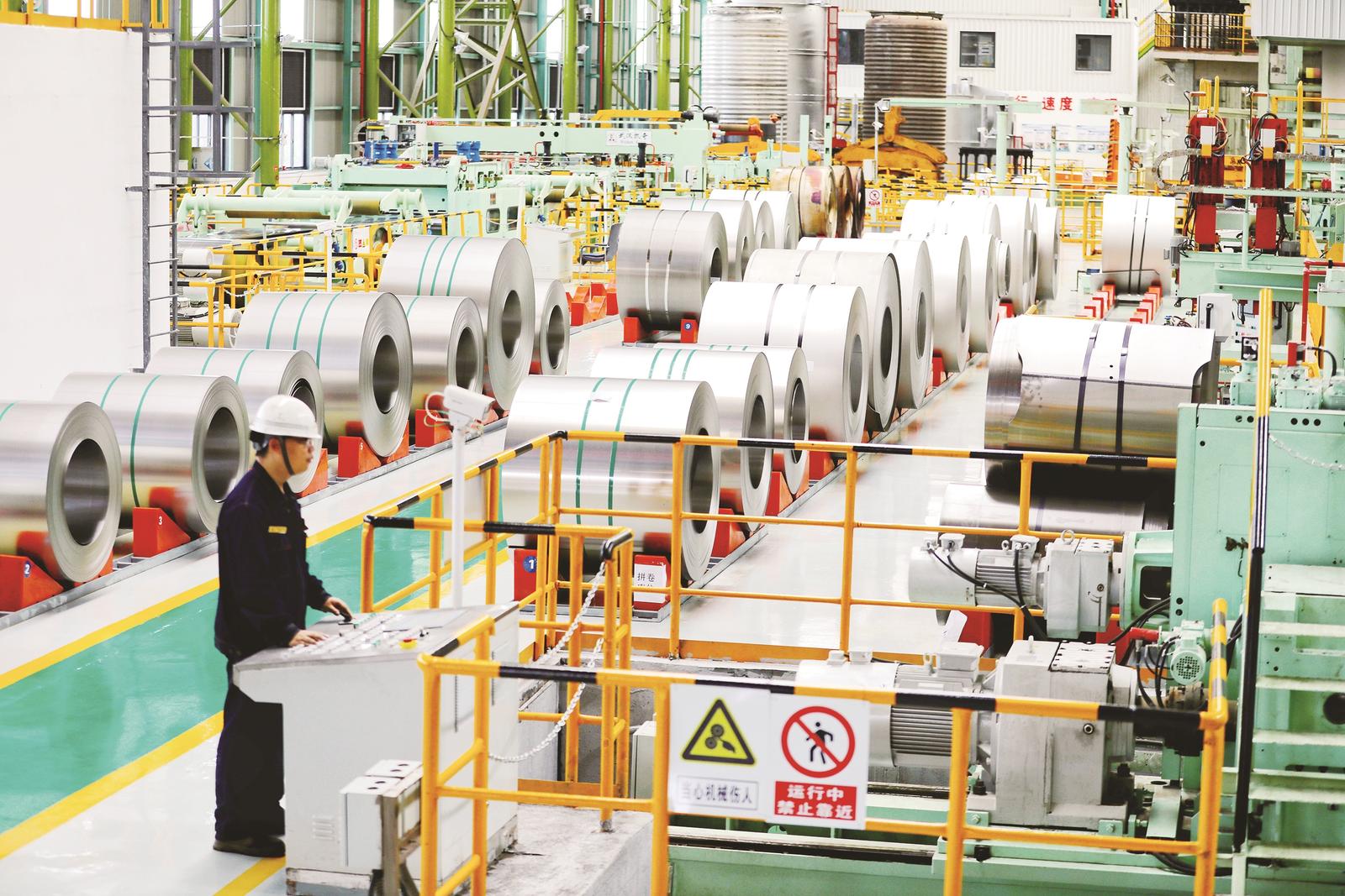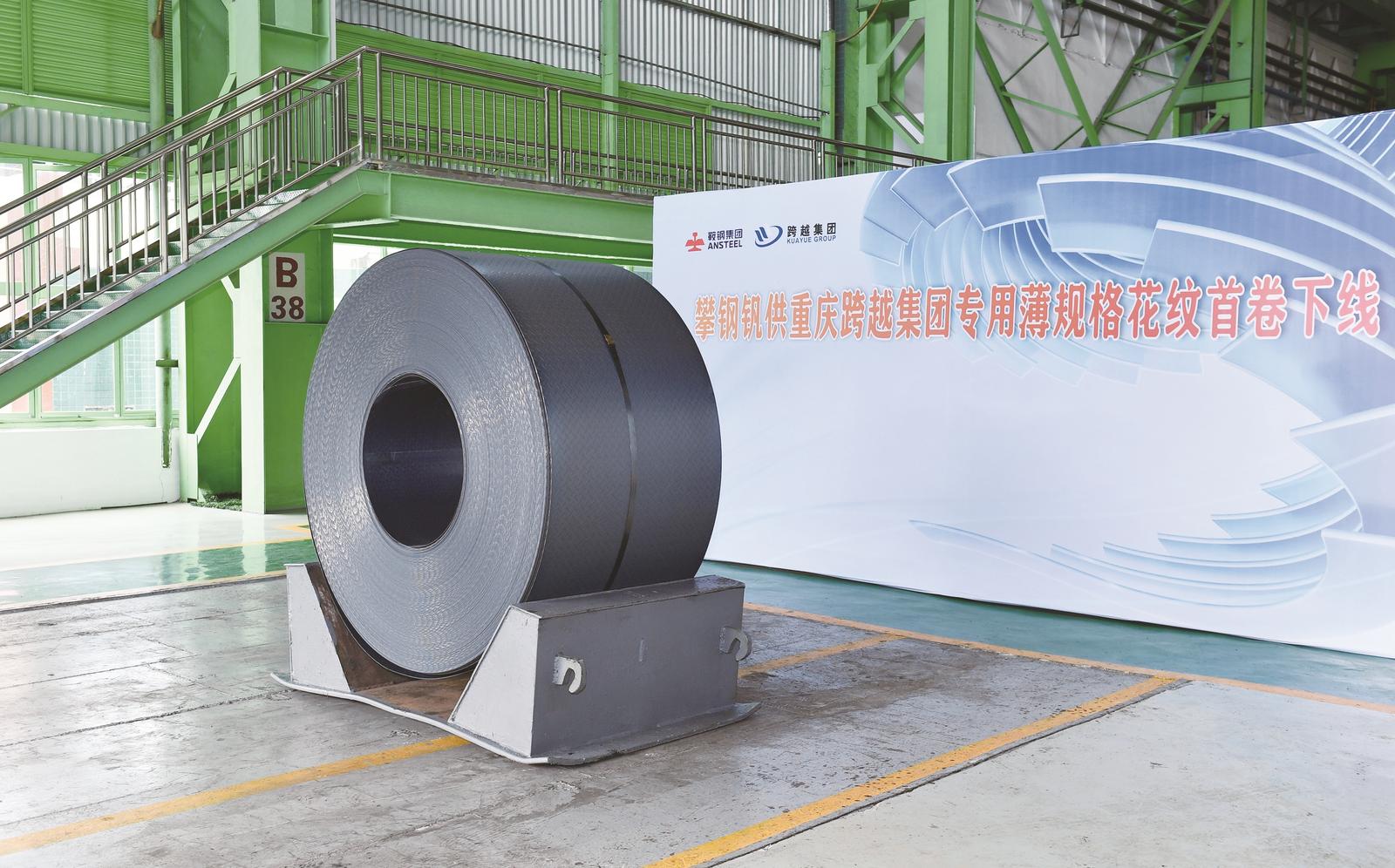 攀钢在极薄规格、耐候钢等高端产品领域不断取得突破。图为2023年6月7日攀钢薄规格花纹板首卷下线。