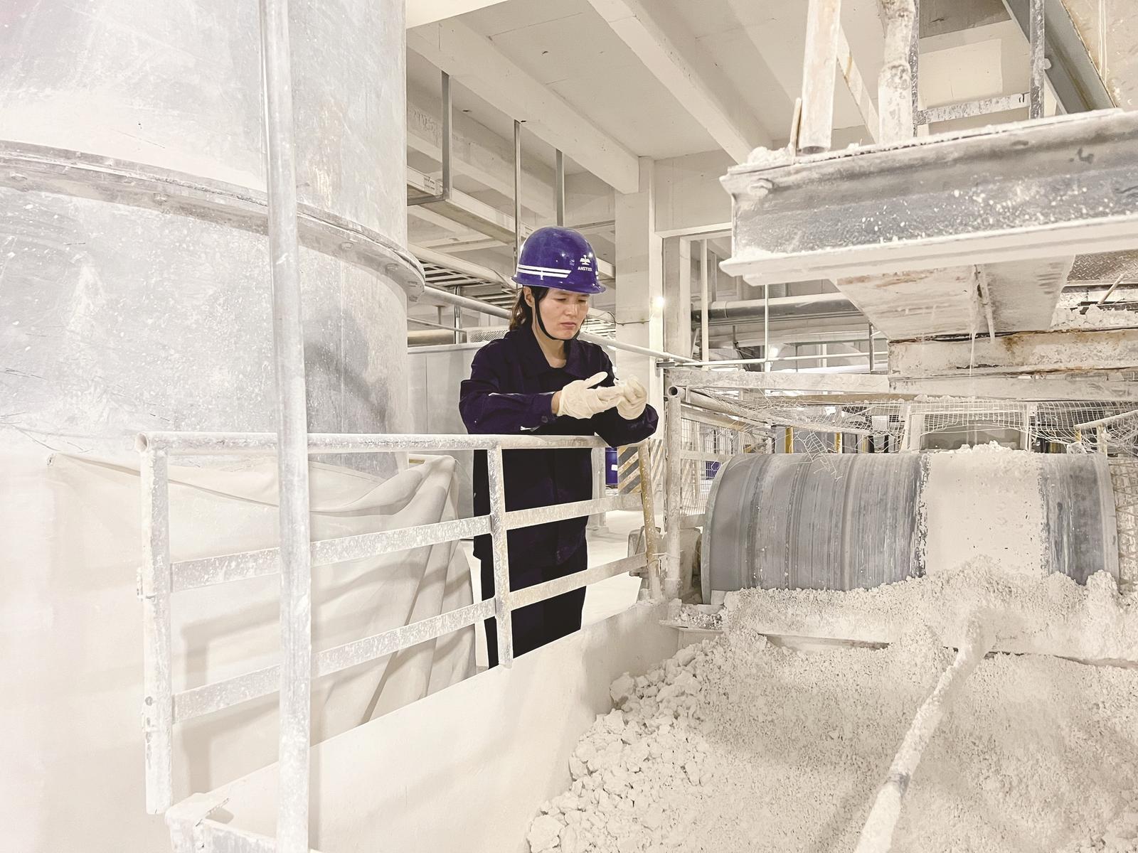 攀钢开发了世界首套水解晶种质量在线判定仪,填补国内外技术空白。图为研究院科研人员在现场观察物料状态。