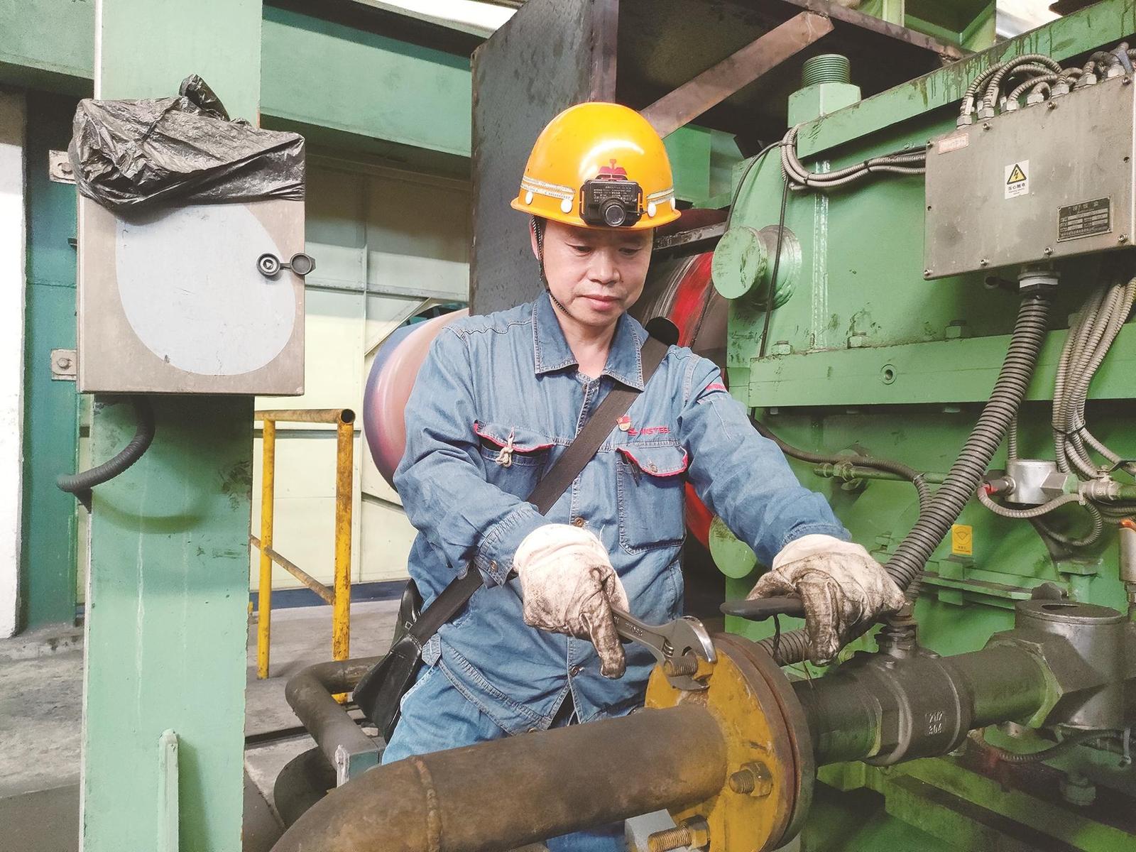 这支由16名机械点检员组成的队伍,有助理工程师2人、高级技师9人、技师2人、高级钳工3人。该班组主要负责1450热轧生产线主体机械、液压、设备润滑,以及平整线、纵切线等关键设备的日常点检与故障处理,是保障生产线平稳运行的“第一道防线”。